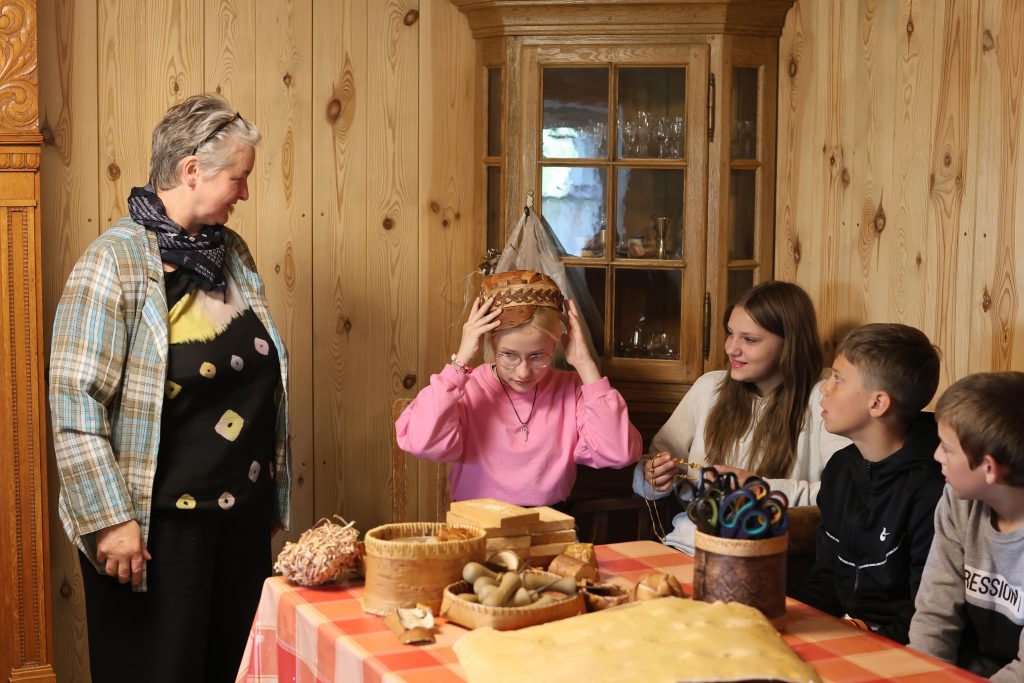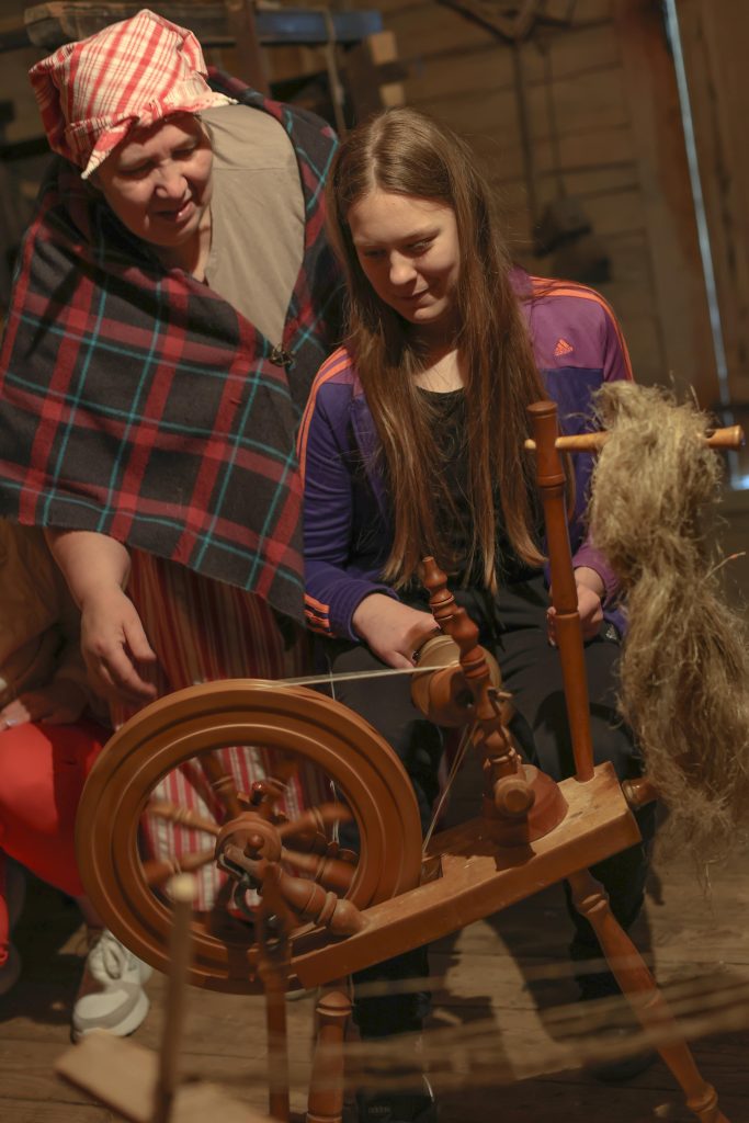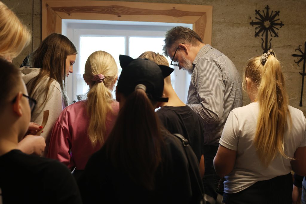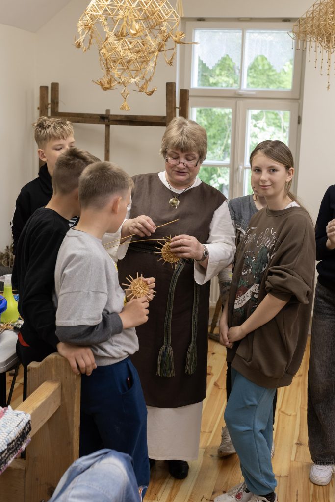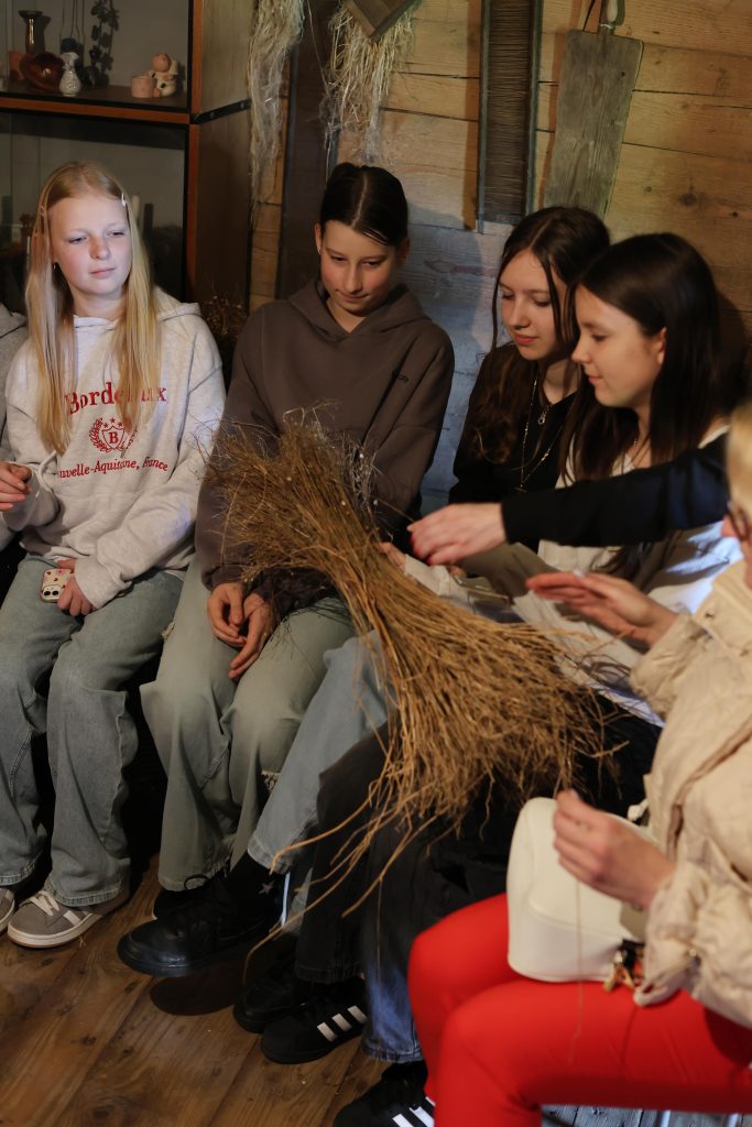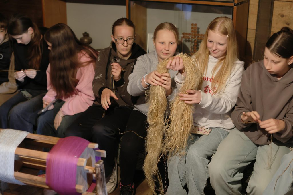 Edukacijos „Audimo amatas“ metu dalyviai buvo supažindinti su lino keliu – nuo pluošto ruošimo iki audinio raštų. Audėja Virginija Dirvonskienė pristatė lino kelią nuo sėklos iki audeklo, o meistrės Birutė Poškienė ir Marytė Janulienė mokė pinti ir austi tradicines juostas. Mokiniai patys audė juosteles, išbandė senąsias stakles, klausėsi istorijų apie linininkystės tradicijas Žemaitijoje.